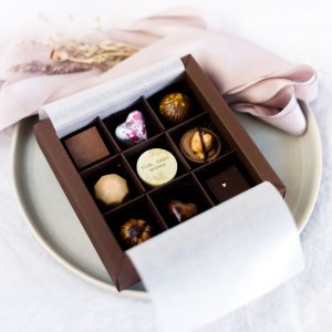 12er Pralinen Schachtel gefüllt mit bunter Pralinenmischung aus unserer Pralinentheke.