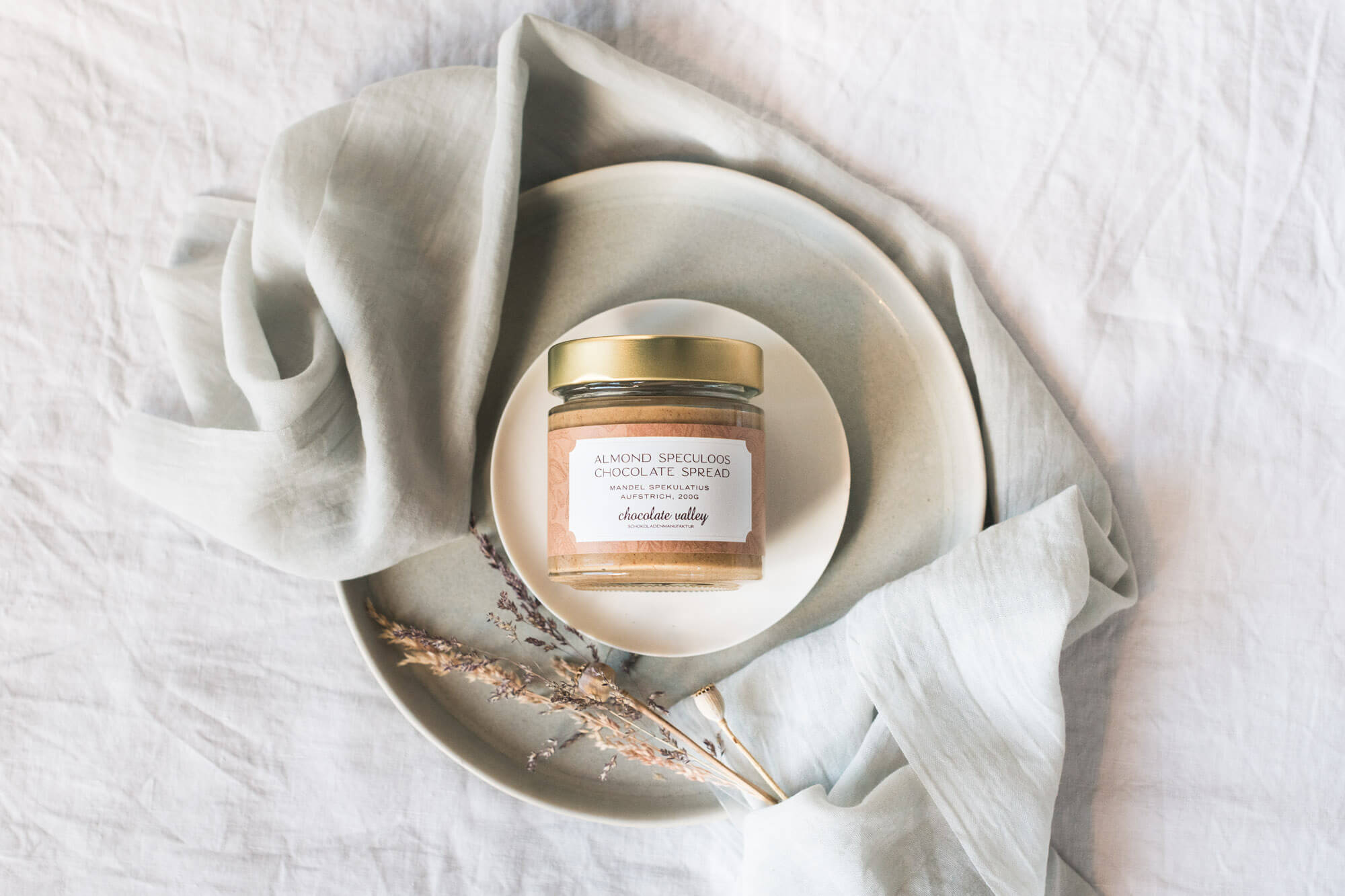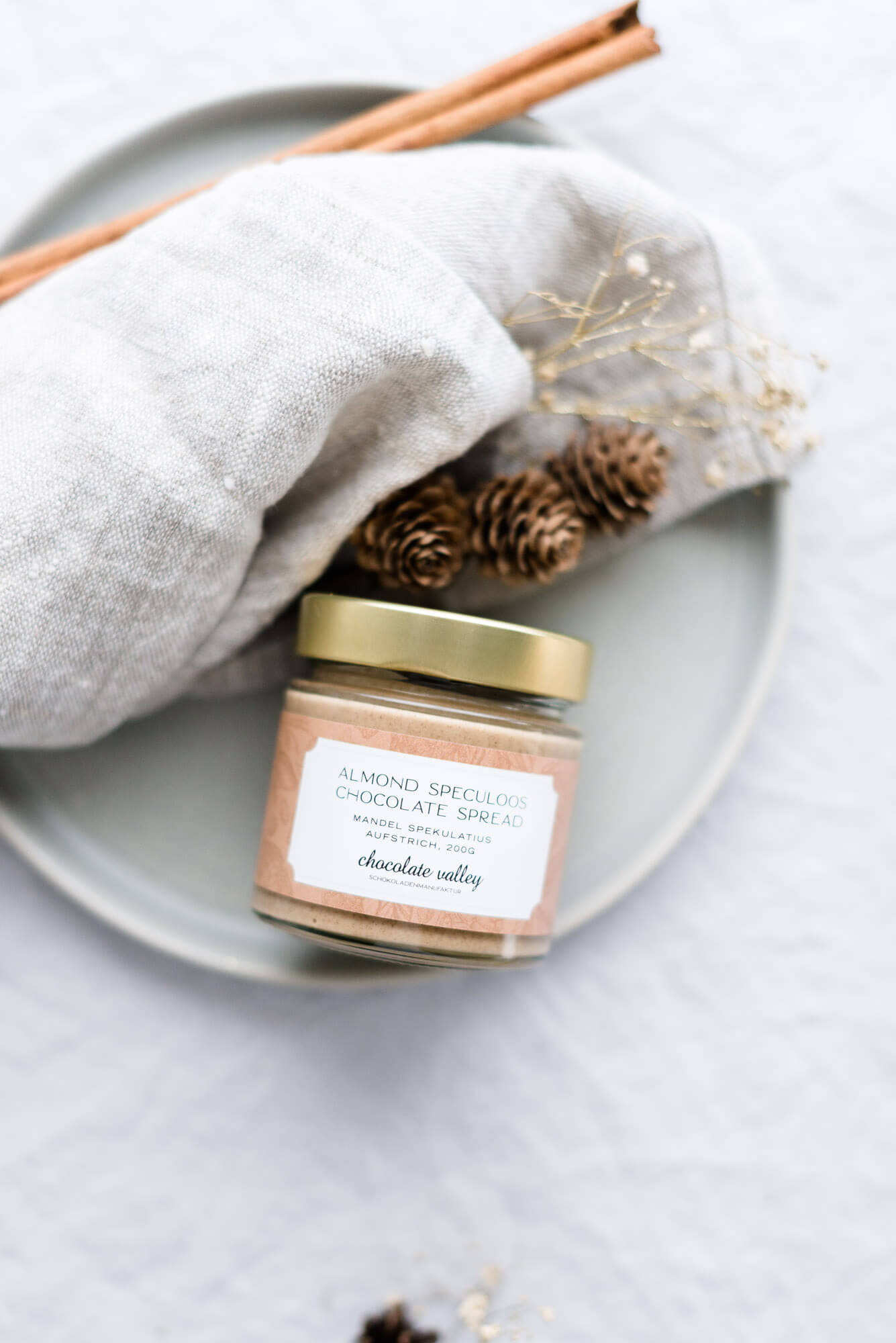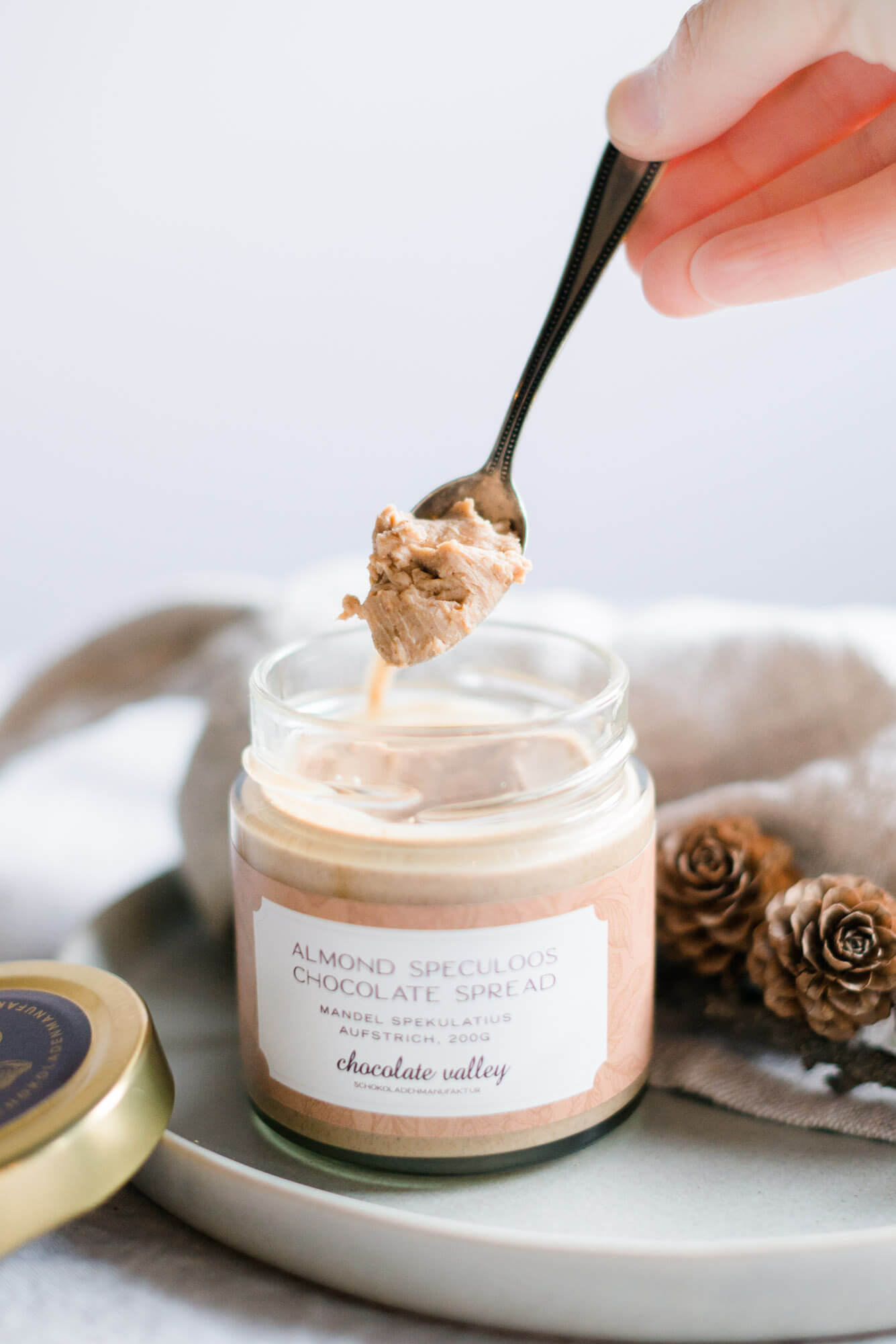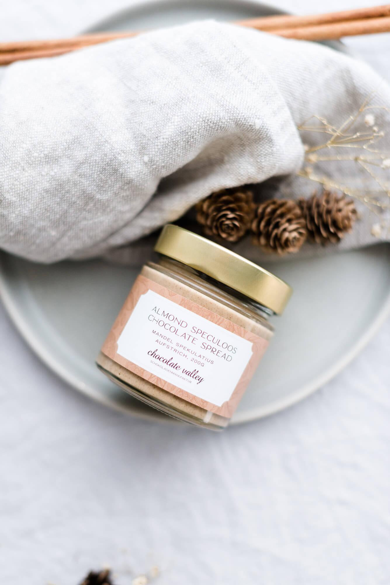 Mandelpraliné mit knusprigen Stücken, Spelulatiusgewürz und etwas weisse Kuvertüre – ein perfekter Weihnachtstraum.